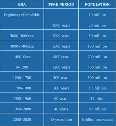 The table below illustrates this, including the great acceleration over the past 200 years. It forces us to ask the question: What will happen if the human population continues on its current growth path?